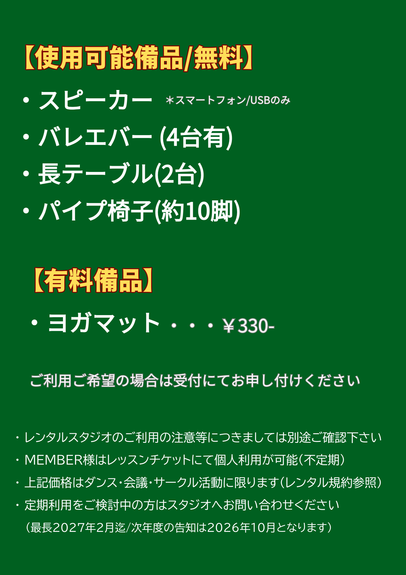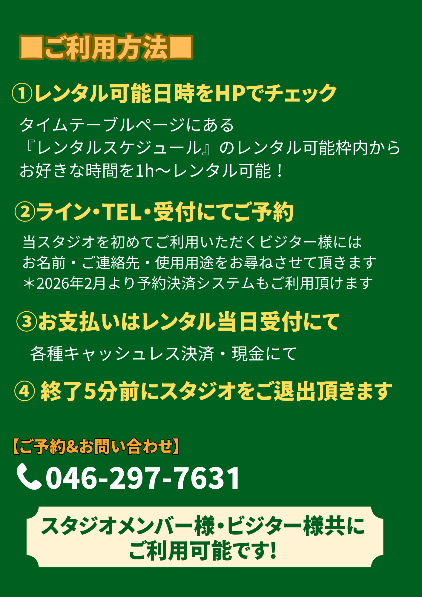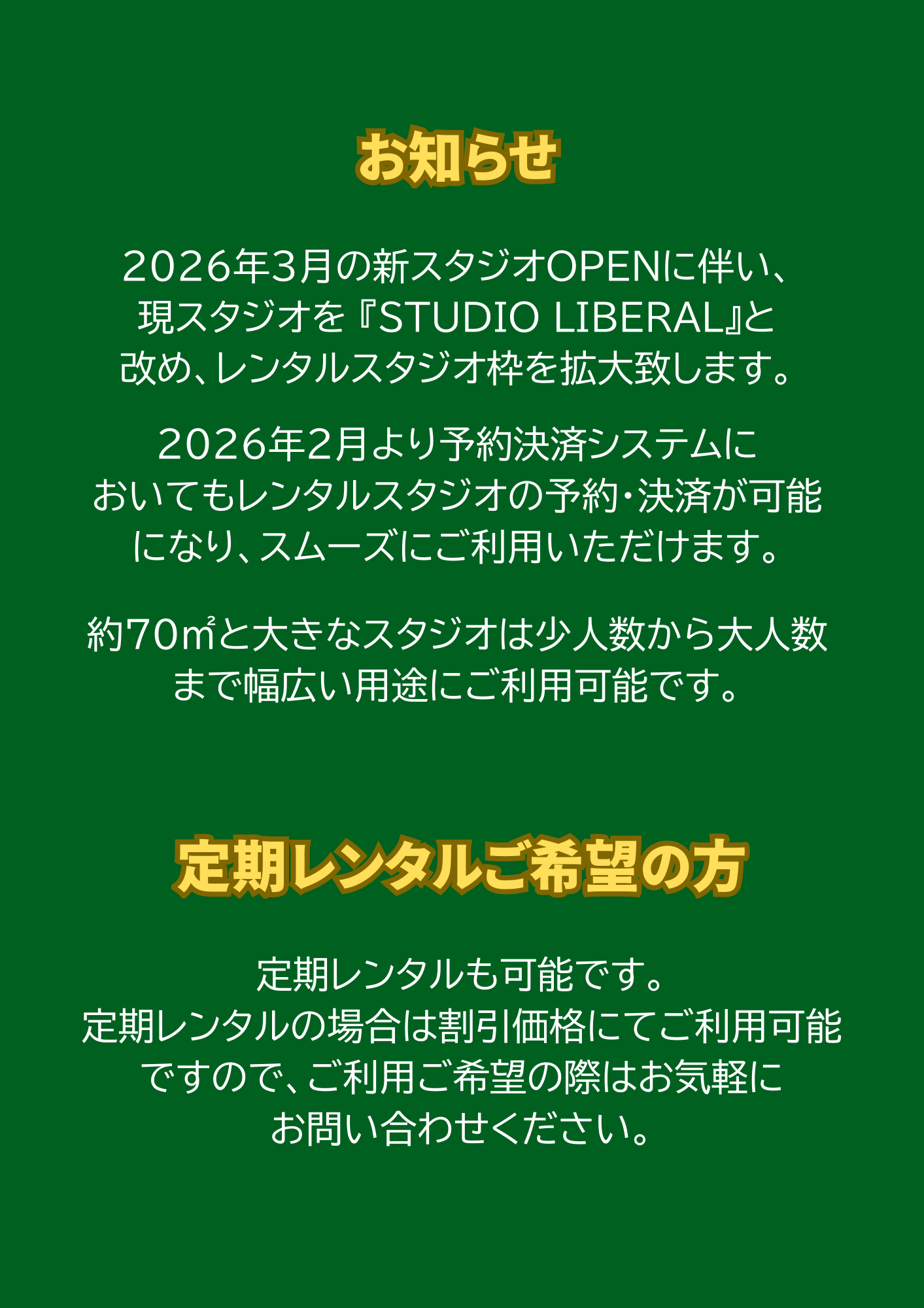 レンタルスタジオ詳細➡■レンタルスタジオについて■