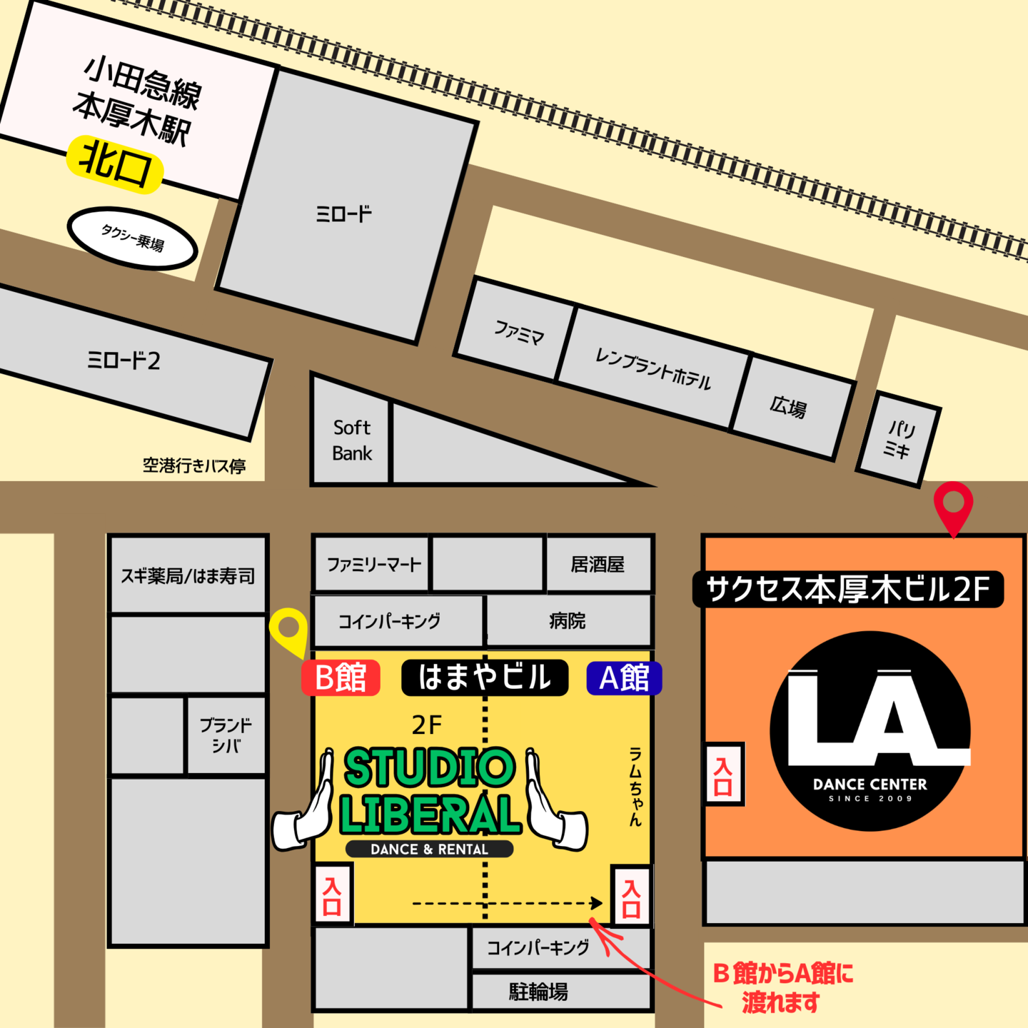 ■L.A Dance Center…本厚木駅北口より徒歩約3分